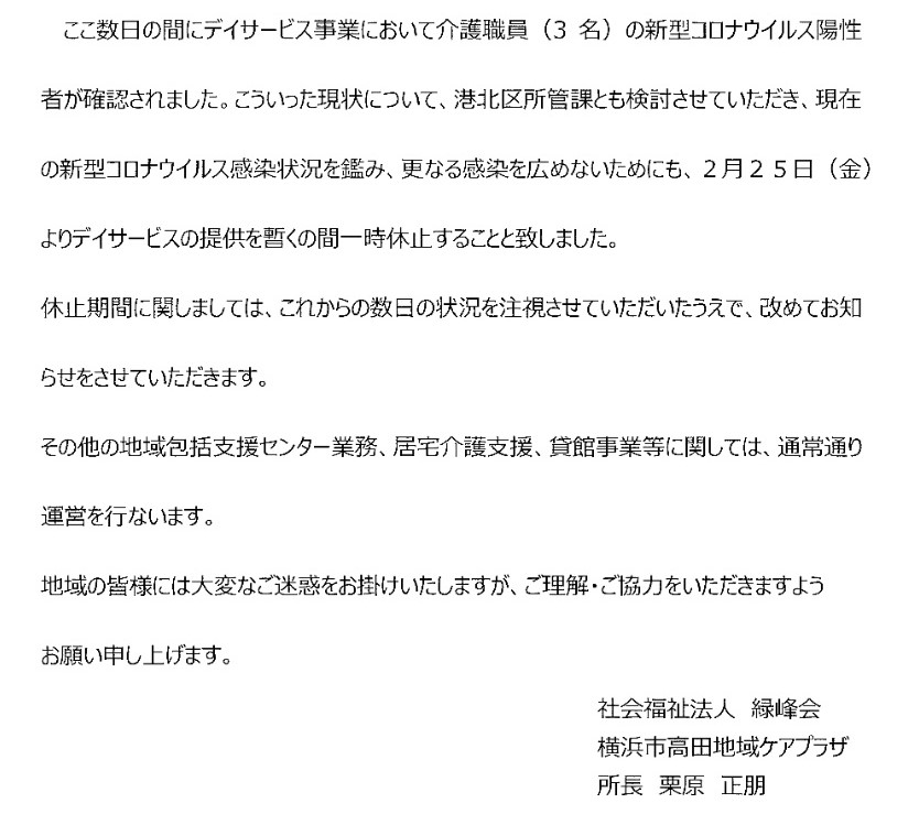 デイサービスの一時休止について(通知)
