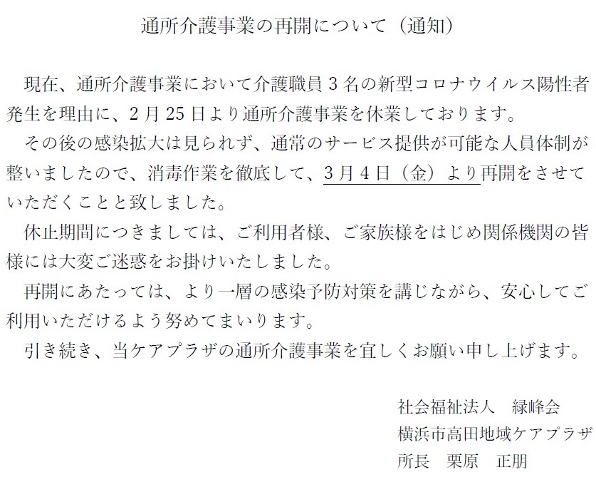 デイサービスの再開について(通知)